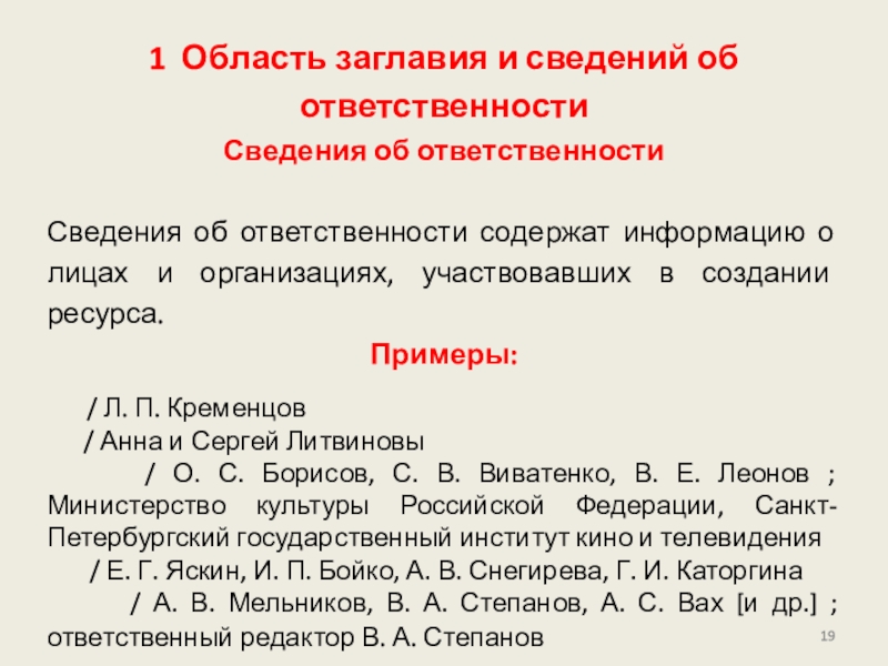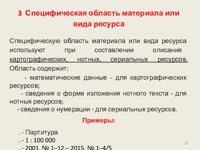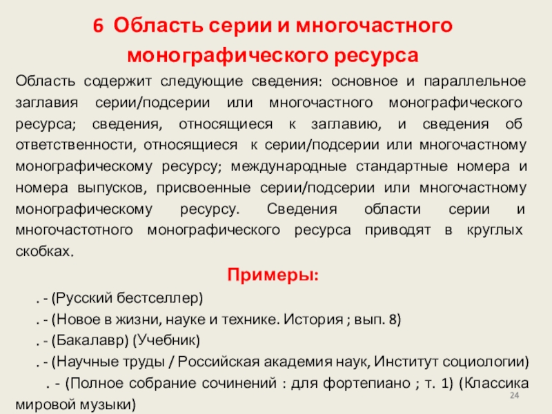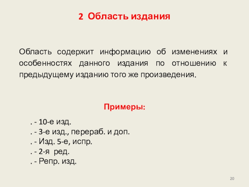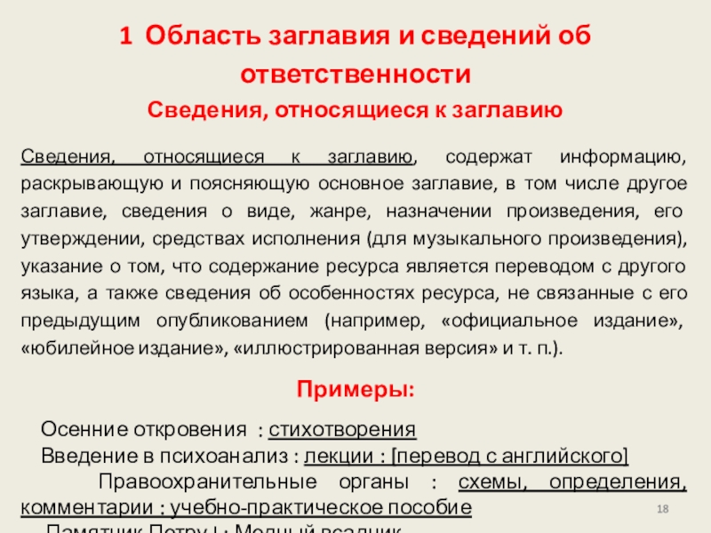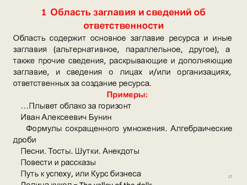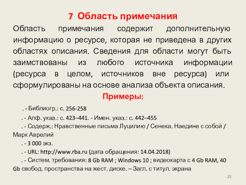 приведена в других областях описания. Сведения для области могут быть заимствованы из любого источника информации (ресурса в целом, источников вне ресурса) или сформулированы на основе анализа объекта описания.
