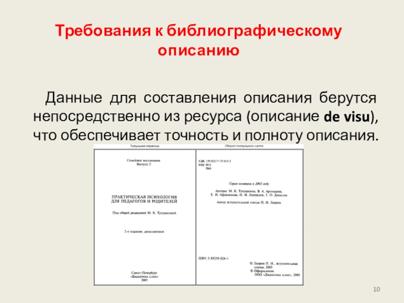Слайд 10Требования к библиографическому описанию
