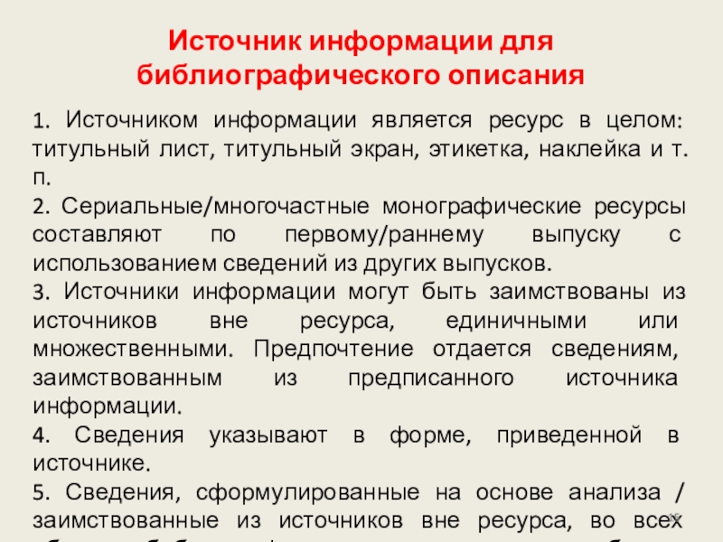 3. Источники информации могут быть заимствованы из источников вне ресурса, единичными или множественными. Предпочтение отдается сведениям, заимствованным из предписанного источника информации.