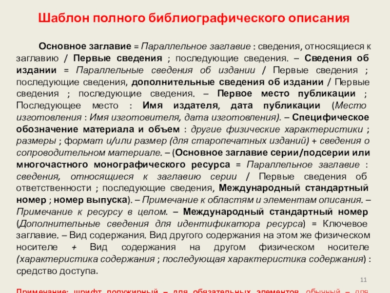 Слайд 11Шаблон полного библиографического описания