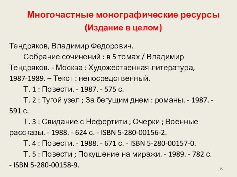 Слайд 35Многочастные монографические ресурсы
