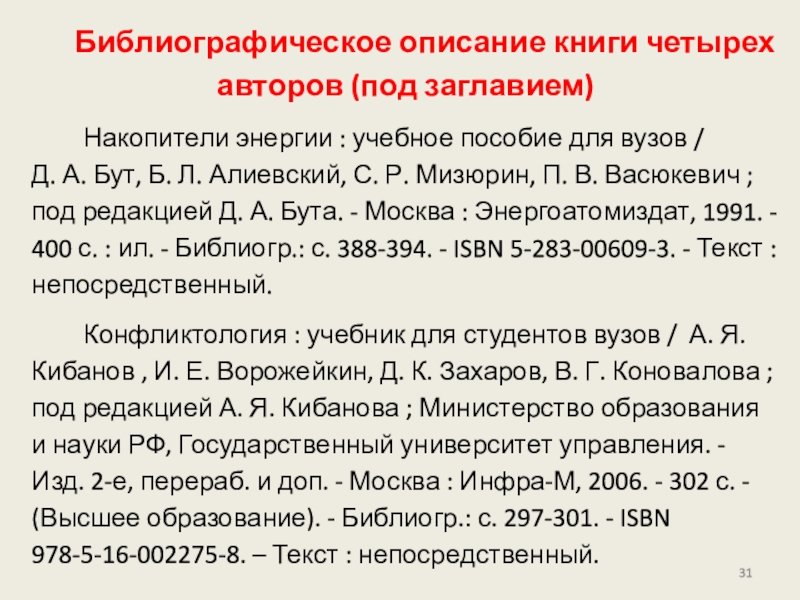 Слайд 31Библиографическое описание книги четырех авторов (под заглавием)