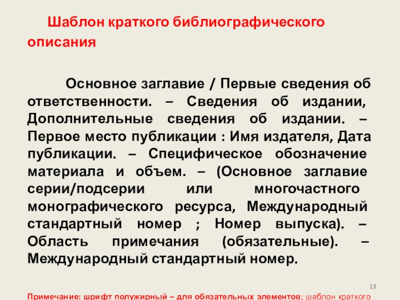 Слайд 13Шаблон краткого библиографического описания