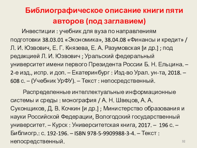 Слайд 32Библиографическое описание книги пяти авторов (под заглавием)