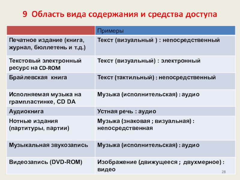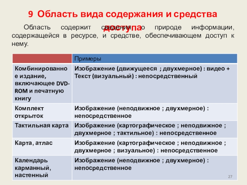 Слайд 279 Область вида содержания и средства доступа