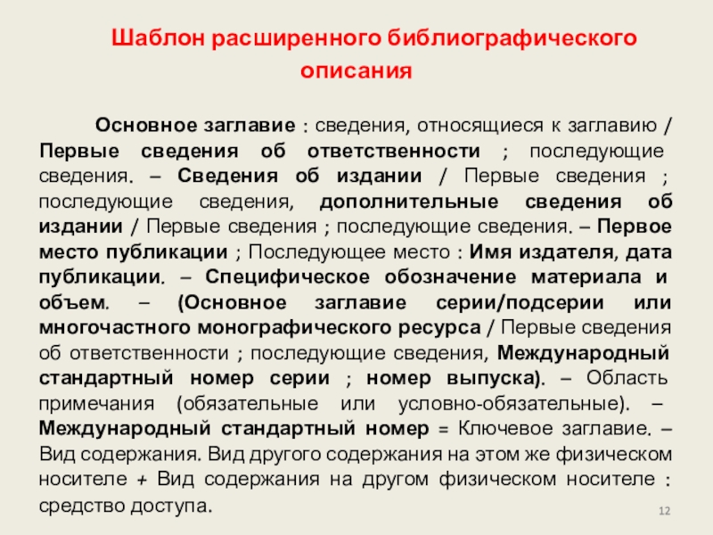 Слайд 12Шаблон расширенного библиографического описания