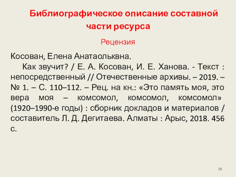 Слайд 38Библиографическое описание составной части ресурса