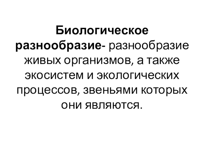 Слайд 2Биологическое разнообразие- разнообразие живых организмов, а также экосистем и экологических процессов,
