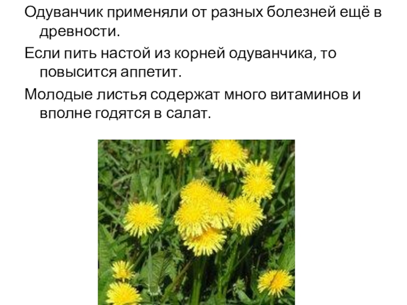 Если пить настой из корней одуванчика, то повысится аппетит.