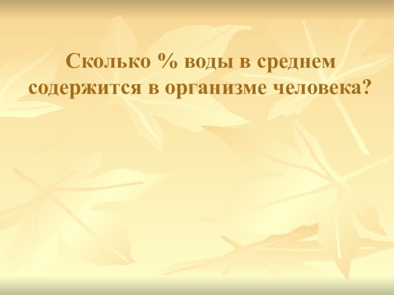Слайд 35Сколько % воды в среднем содержится в организме человека?