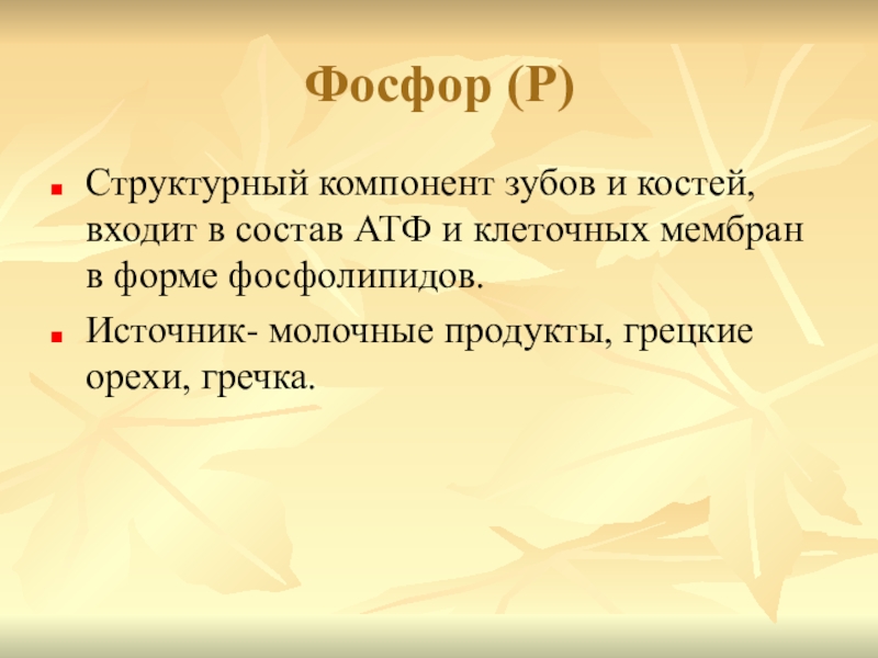 Структурный компонент зубов и костей, входит в состав АТФ и