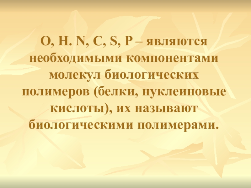 Слайд 7О, Н. N, С, S, P – являются необходимыми компонентами молекул