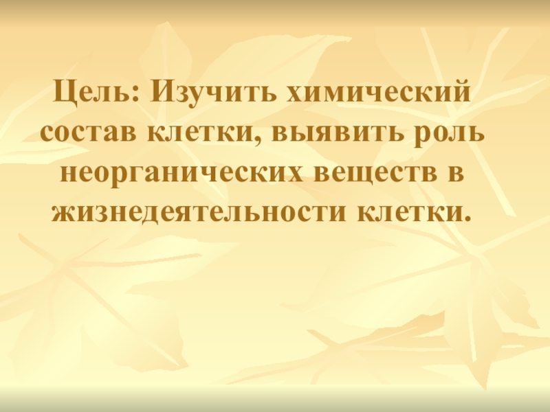 Слайд 3Цель: Изучить химический состав клетки, выявить роль неорганических веществ в жизнедеятельности