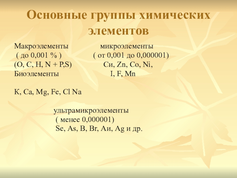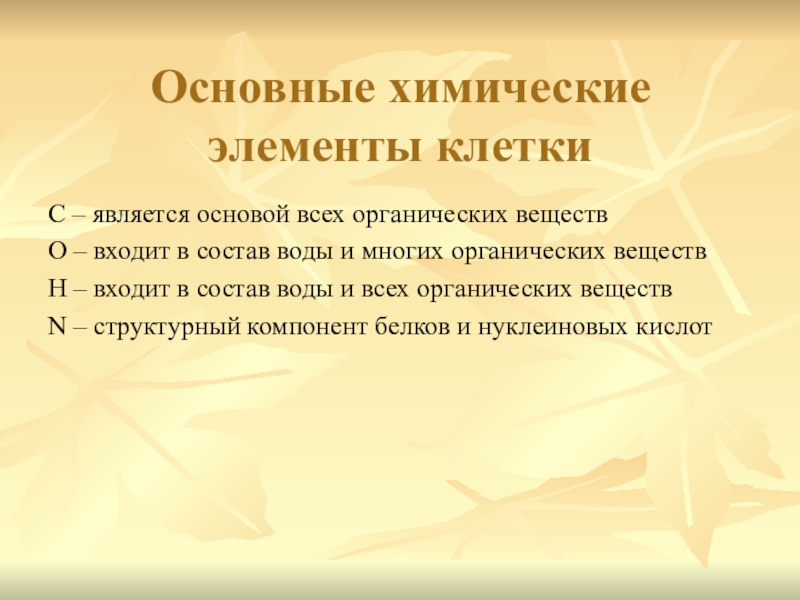 Слайд 8Основные химические элементы клетки