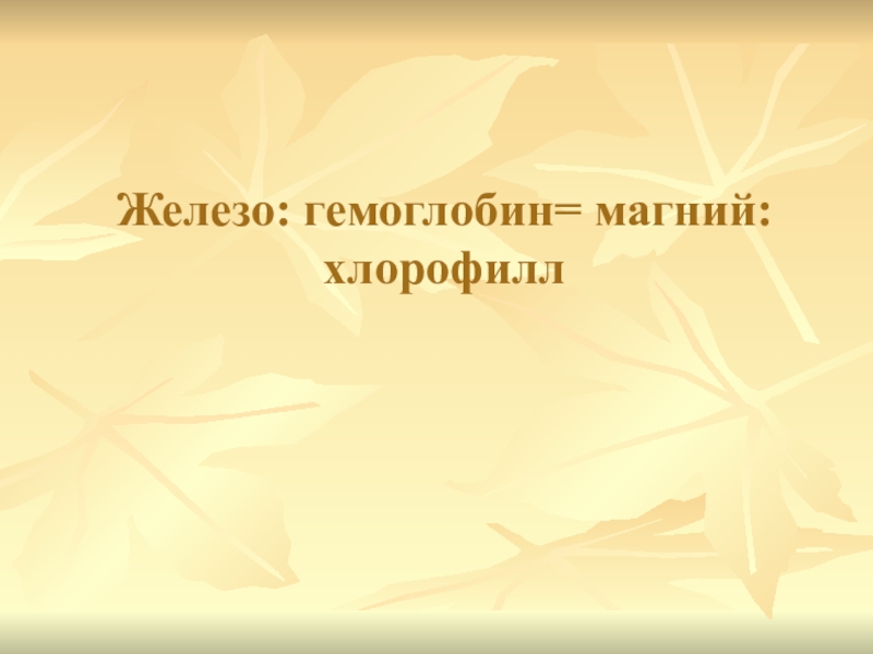 Слайд 33Железо: гемоглобин= магний: