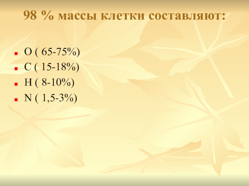 Слайд 598 % массы клетки составляют: