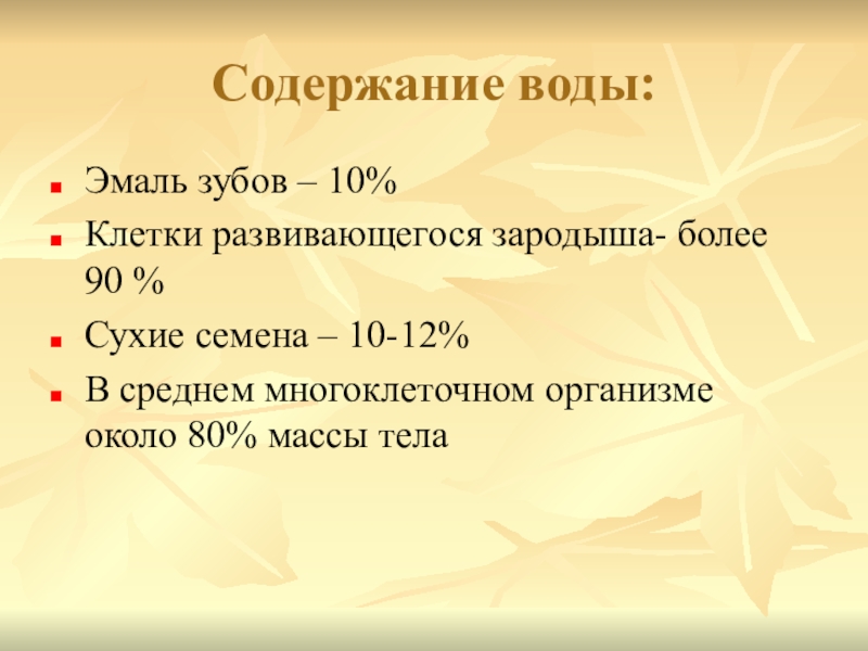 Слайд 22Содержание воды: