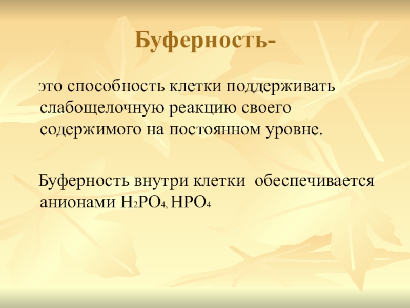 Буферность внутри клетки обеспечивается анионами Н2PО4, НPО4
