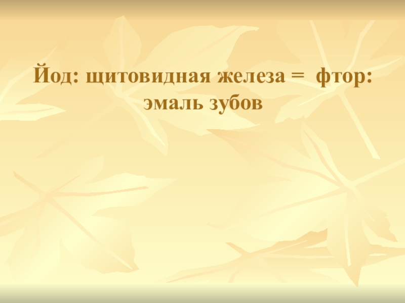 Слайд 31Йод: щитовидная железа = фтор: эмаль зубов