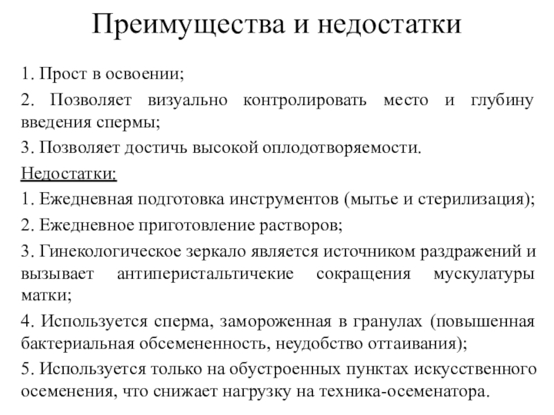 5. Сперма вводится глубоко в шейку матки, что исключает опасность ее вытекания;