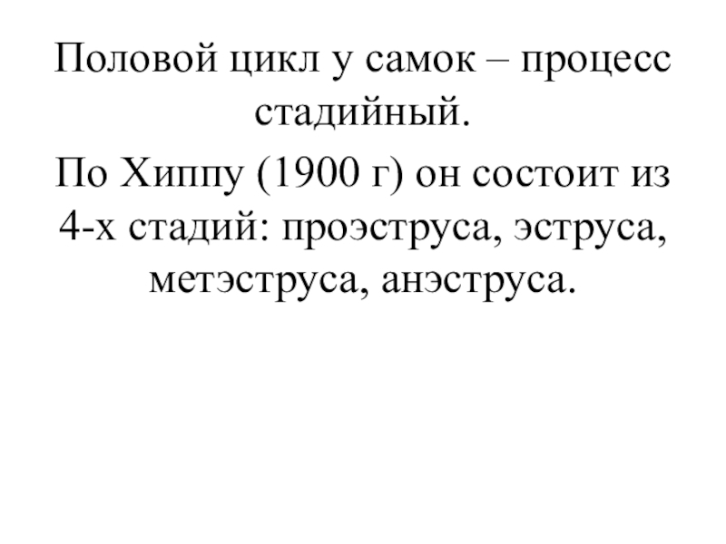Слайд 7Половой цикл у самок – процесс стадийный.