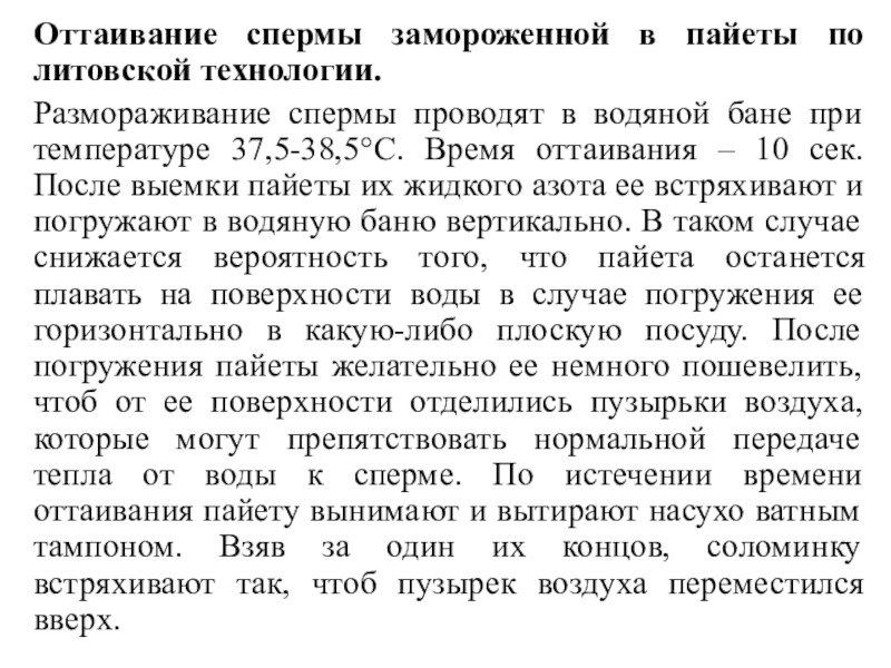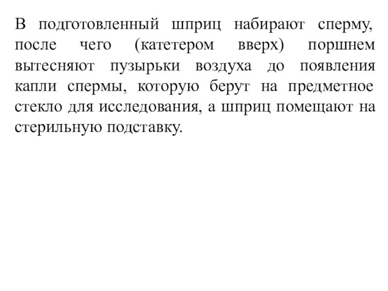 Слайд 123В подготовленный шприц набирают сперму, после чего (катетером вверх) поршнем вытесняют