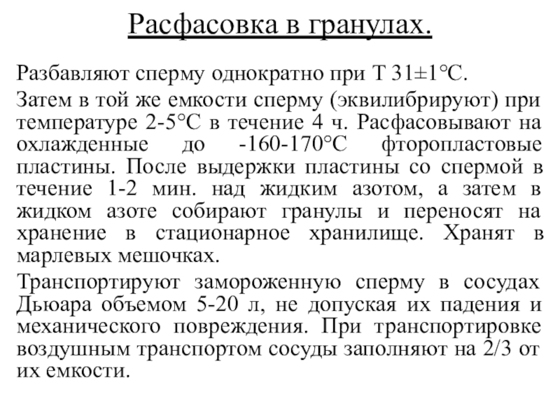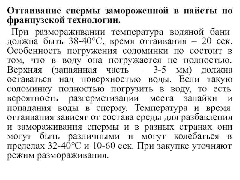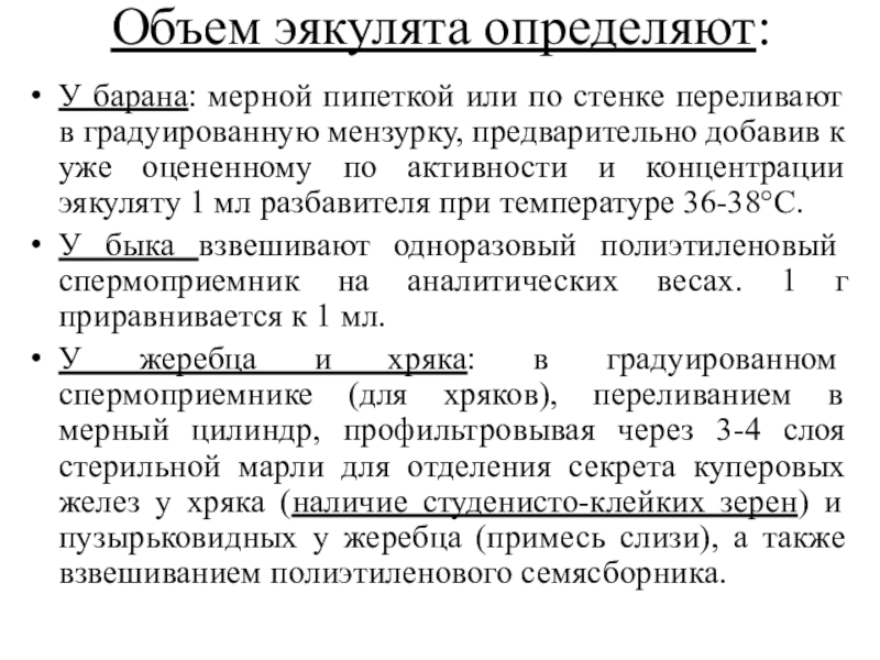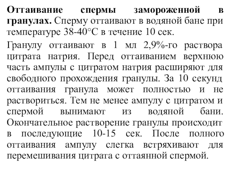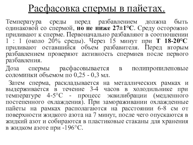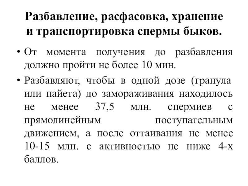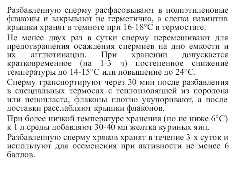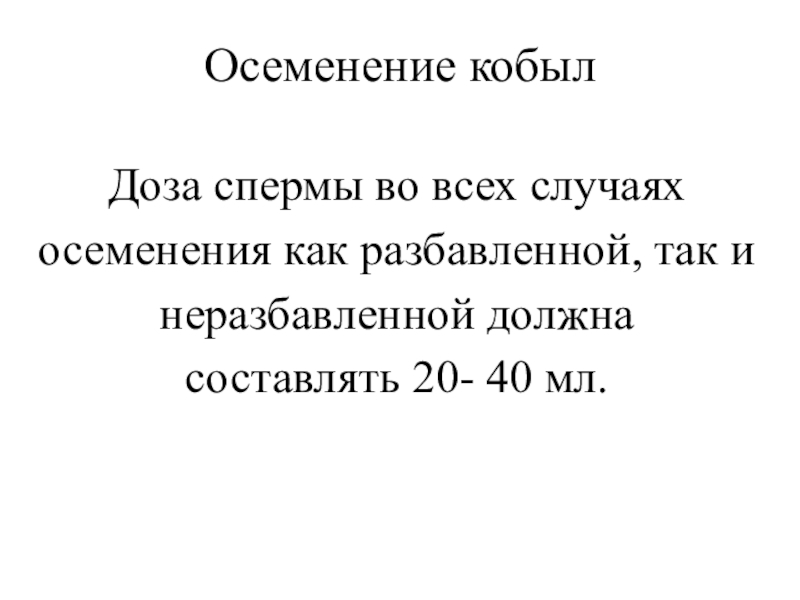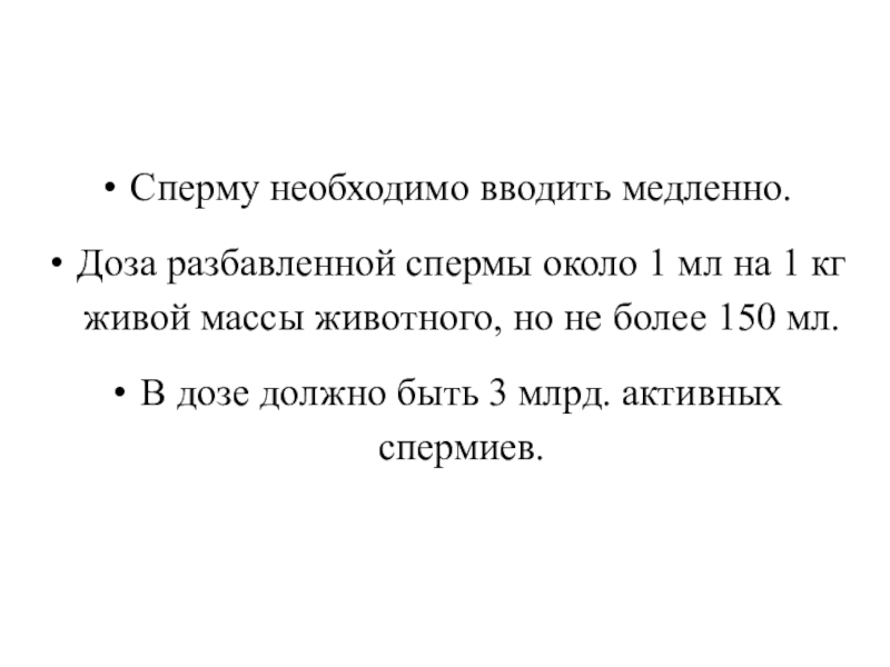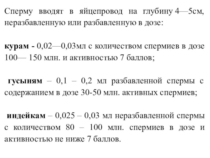 Слайд 151Сперму вводят в яйцепровод на глубину 4—5см, неразбавленную или разбавленную в дозе: