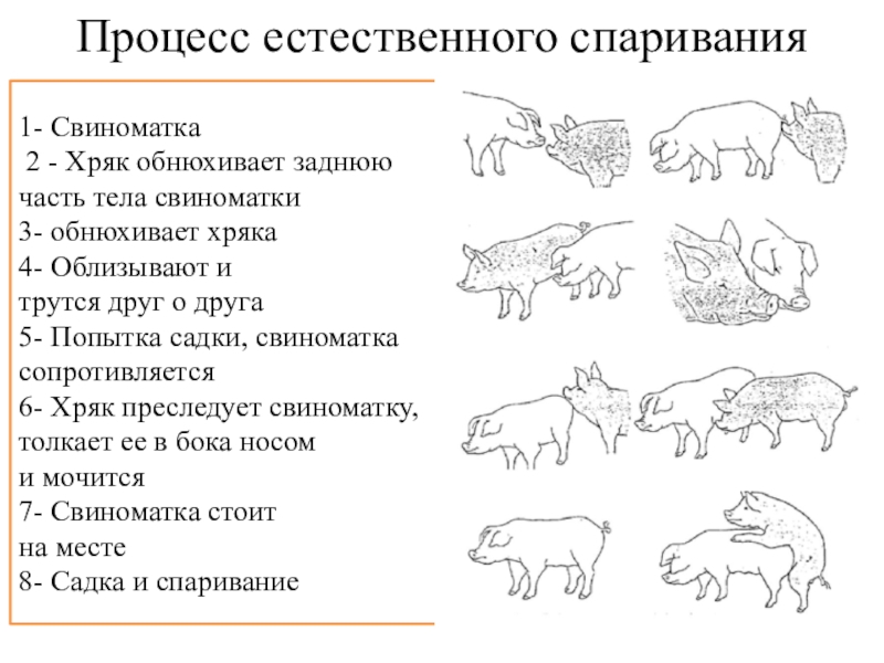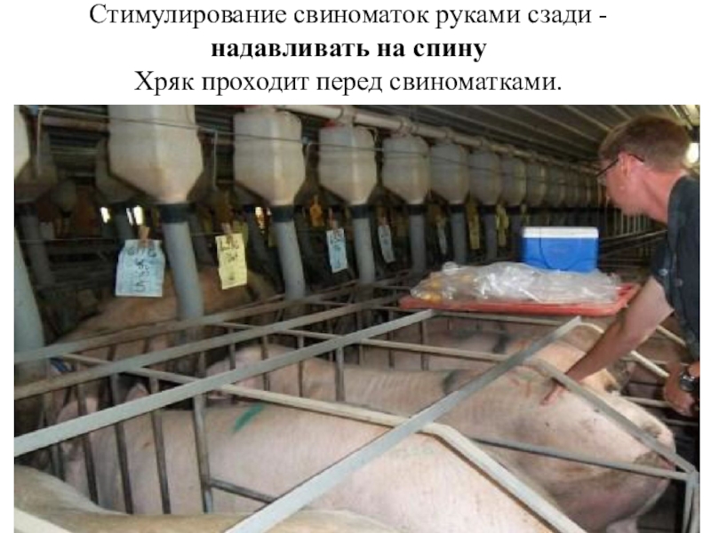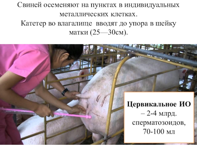 Слайд 142Свиней осеменяют на пунктах в индивидуальных металлических клетках.