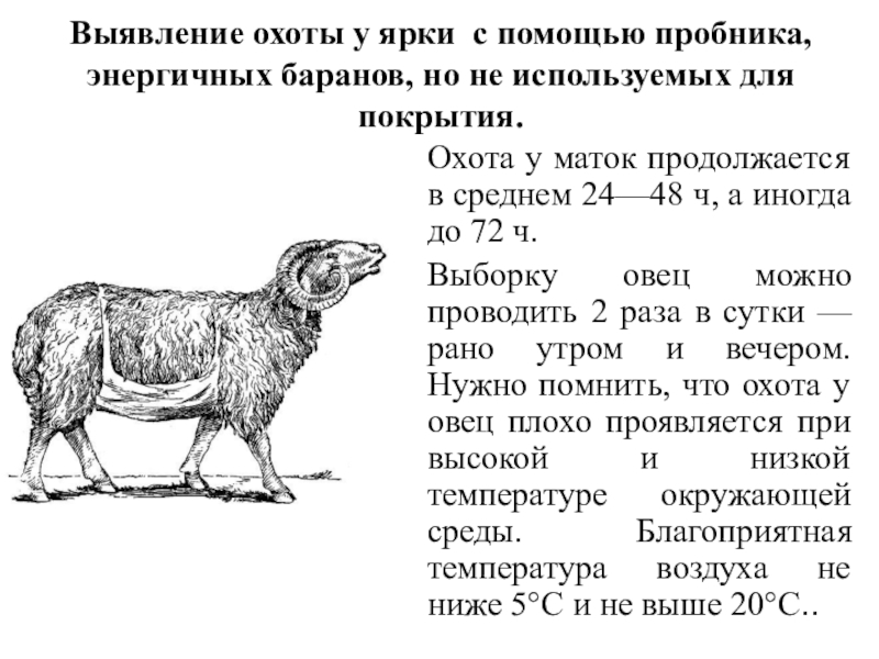 Охота проявляется у овец менее ярко и определяется бараном-пробником.