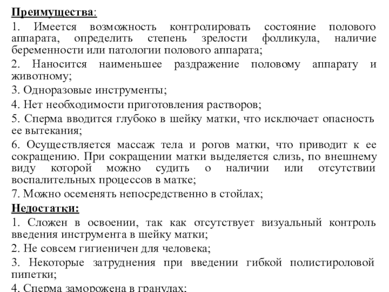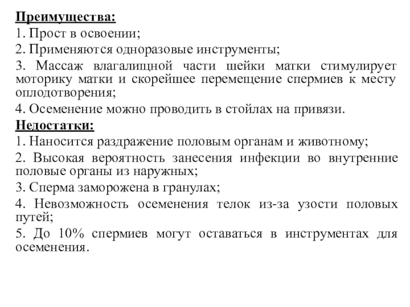 Недостатки: потери эякулята, загрязнение спермы, возможность распространения возбудителей.