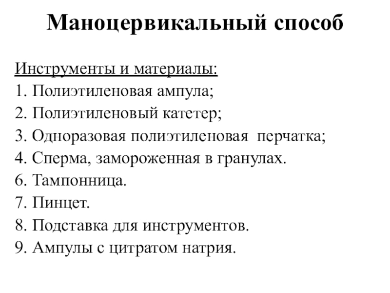сперму из влагалища извлекают шприцем, ложкой, при помощи влагалищного зеркала или рукой.