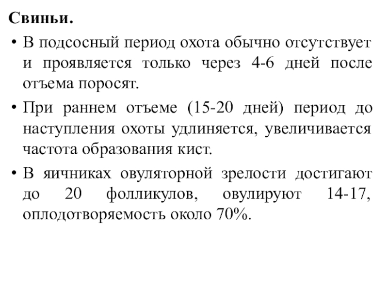 При раннем отъеме (15-20 дней) период до наступления охоты удлиняется, увеличивается частота образования кист.