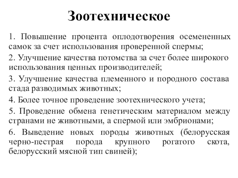 5. Проведение обмена генетическим материалом между странами не животными, а спермой или эмбрионами;