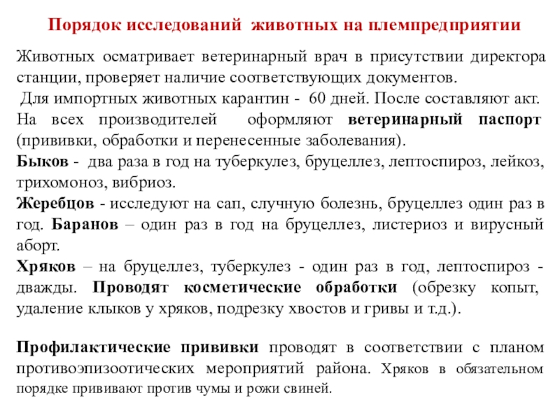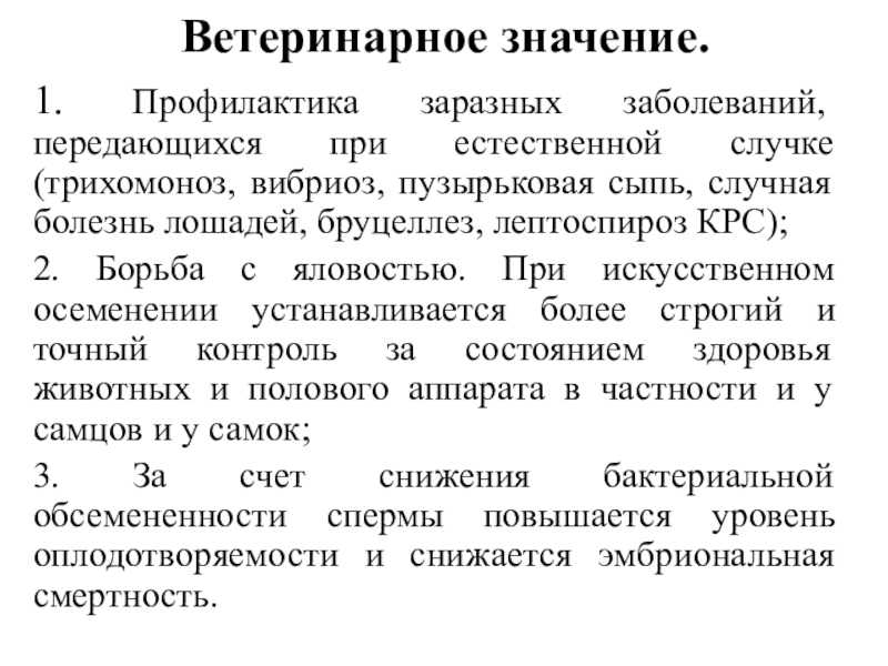 1. Профилактика заразных заболеваний, передающихся при естественной случке (трихомоноз,