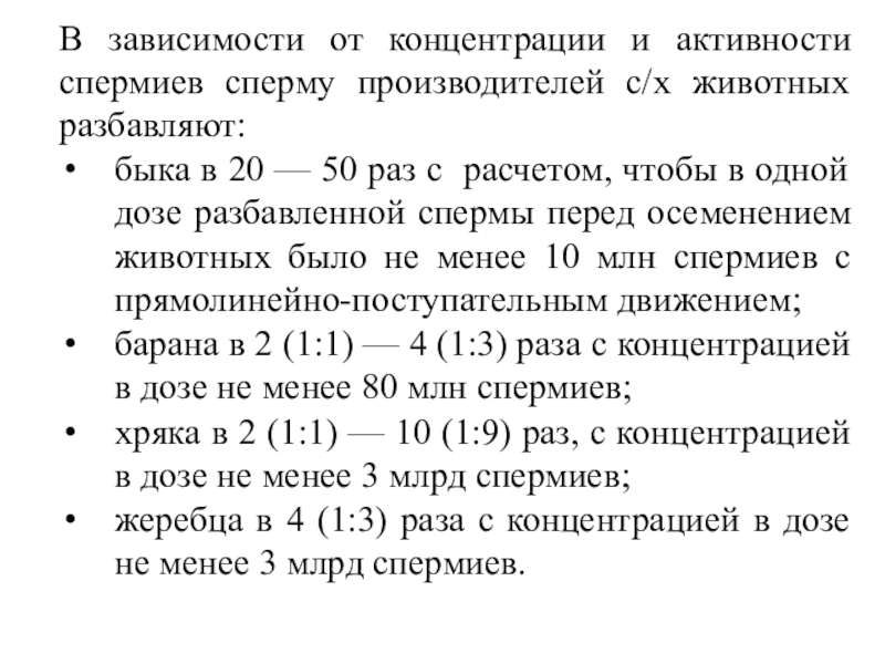 Доза спермы во всех случаях осеменения как разбавленной, так и