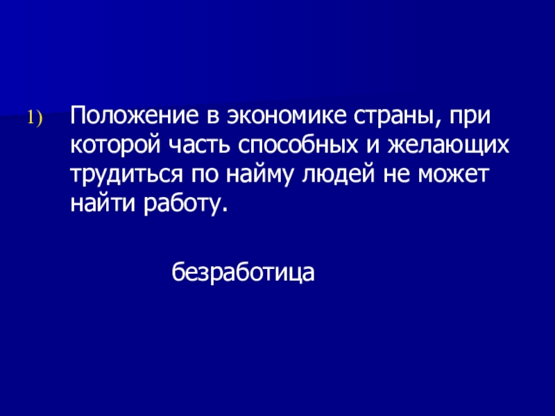 Положение в экономике страны, при которой часть способных и желающих трудиться по найму людей не может найти