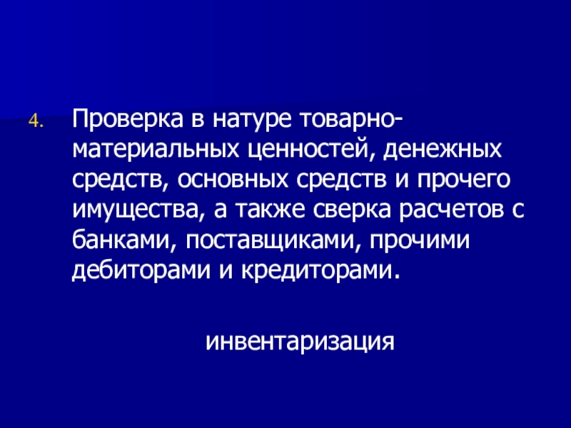 Проверка в натуре товарно-материальных ценностей, денежных средств, основных средств и прочего