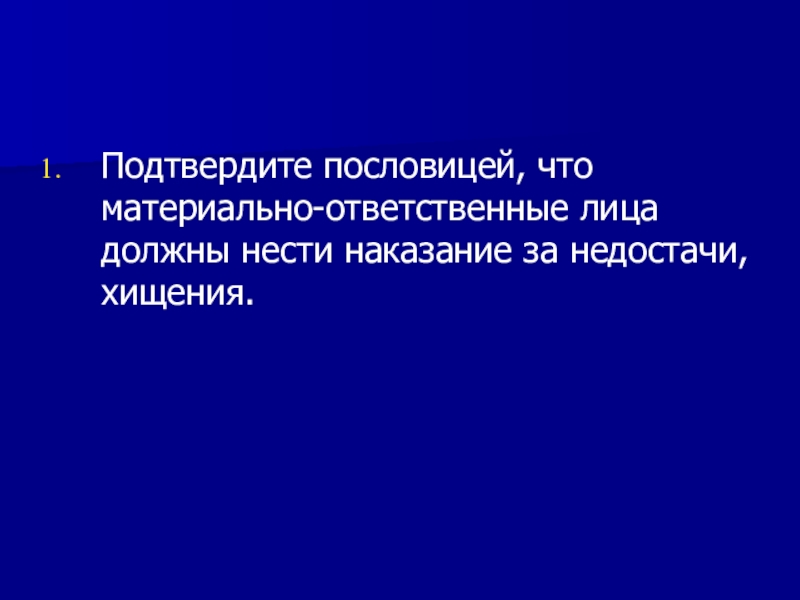 Подтвердите пословицей, что материально-ответственные лица должны нести наказание за недостачи, хищения.