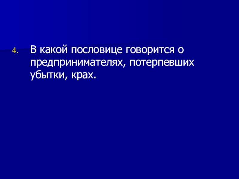 В какой пословице говорится о предпринимателях, потерпевших убытки, крах.