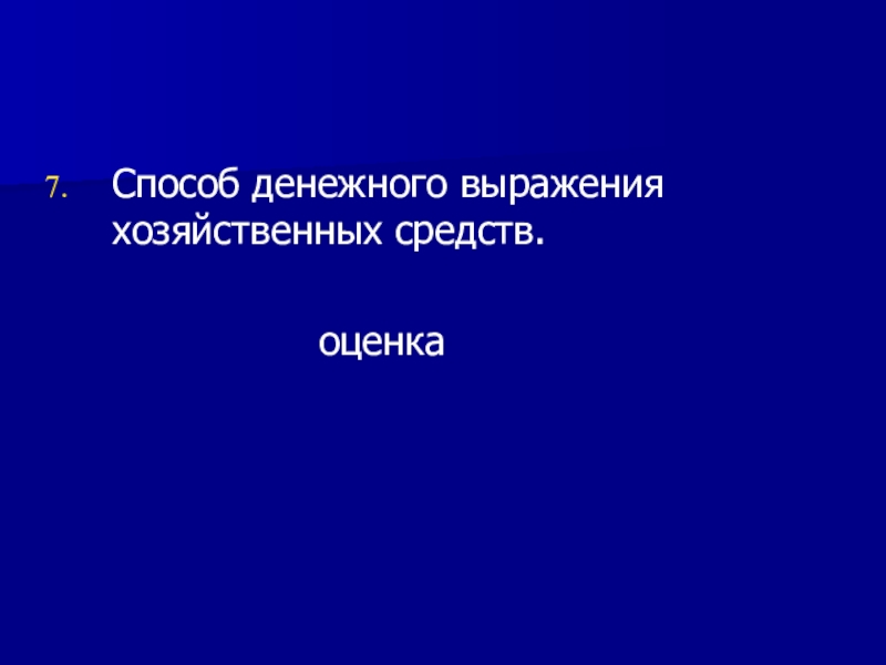 Способ денежного выражения хозяйственных средств.						оценка