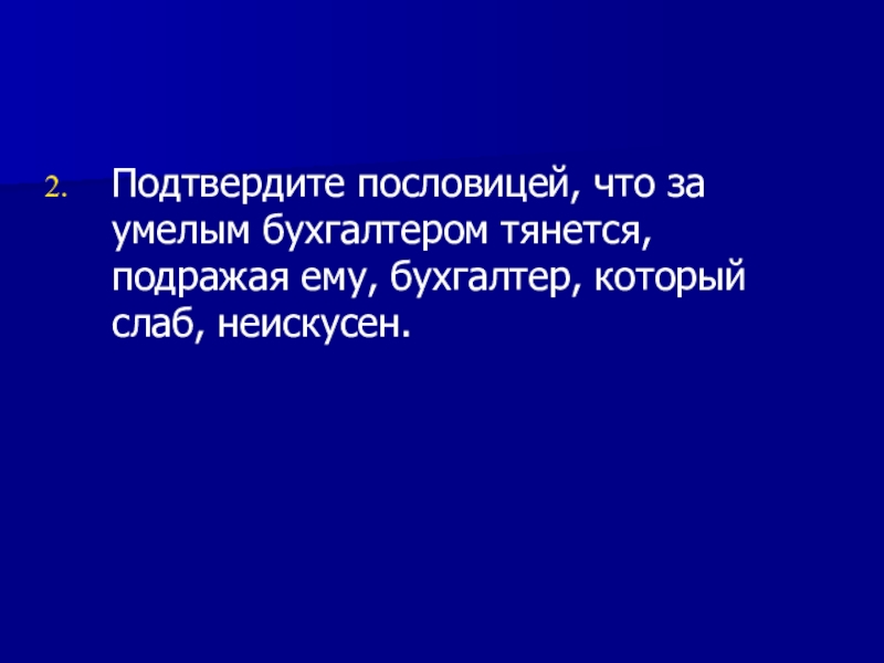 Подтвердите пословицей, что за умелым бухгалтером тянется, подражая ему, бухгалтер, который слаб, неискусен.
