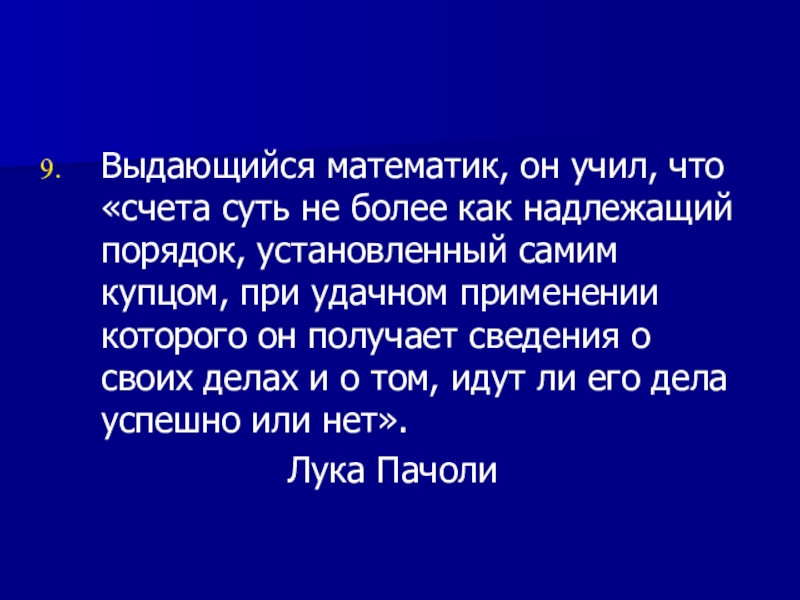 Выдающийся математик, он учил, что «счета суть не более как надлежащий порядок, установленный самим купцом, при удачном