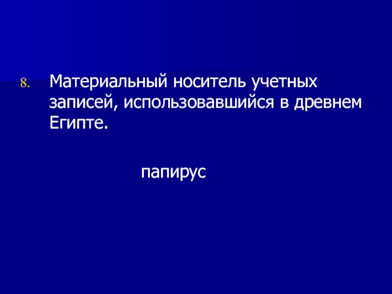Материальный носитель учетных записей, использовавшийся в древнем Египте.						папирус