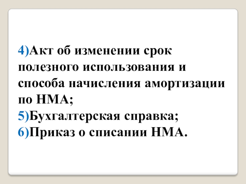 Слайд 294)Акт об изменении срок полезного использования и способа начисления амортизации по