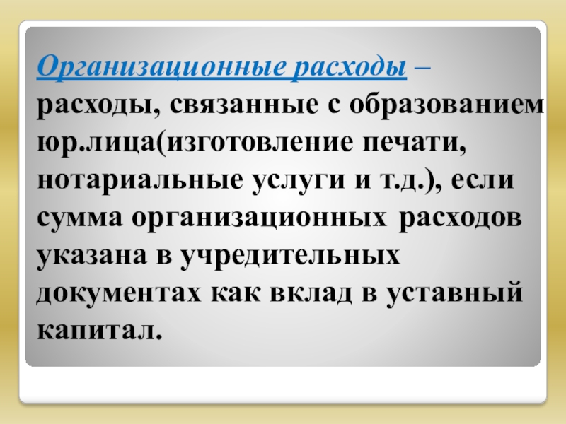 Слайд 19Организационные расходы – расходы, связанные с образованием юр.лица(изготовление печати, нотариальные услуги