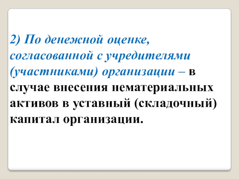 Слайд 242) По денежной оценке, согласованной с учредителями (участниками) организации – в