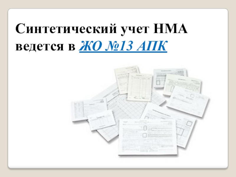 Слайд 30Синтетический учет НМА ведется в ЖО №13 АПК