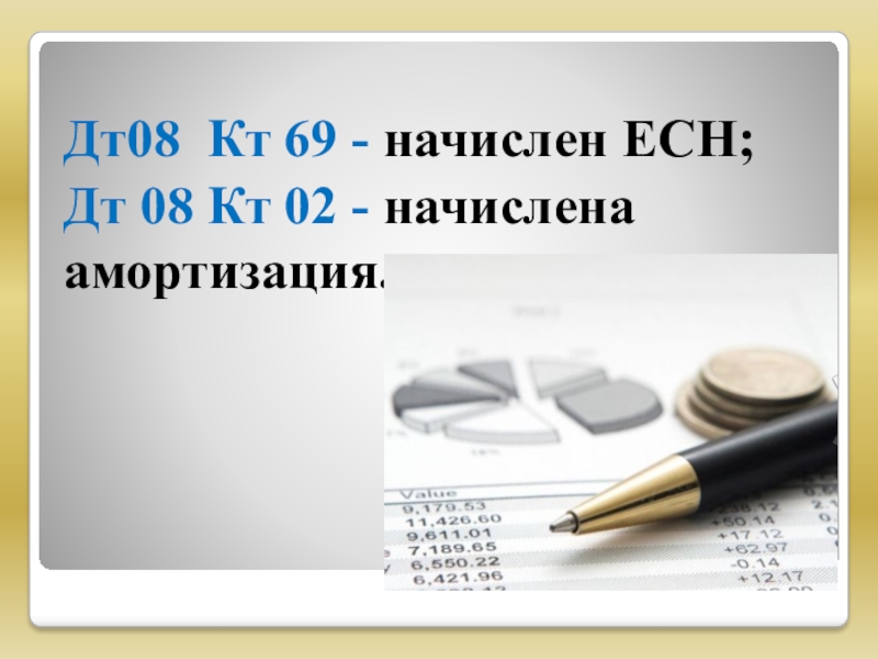 Слайд 39Дт08 Кт 69 - начислен ЕСН;