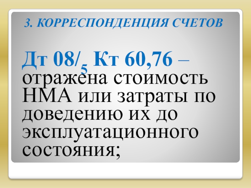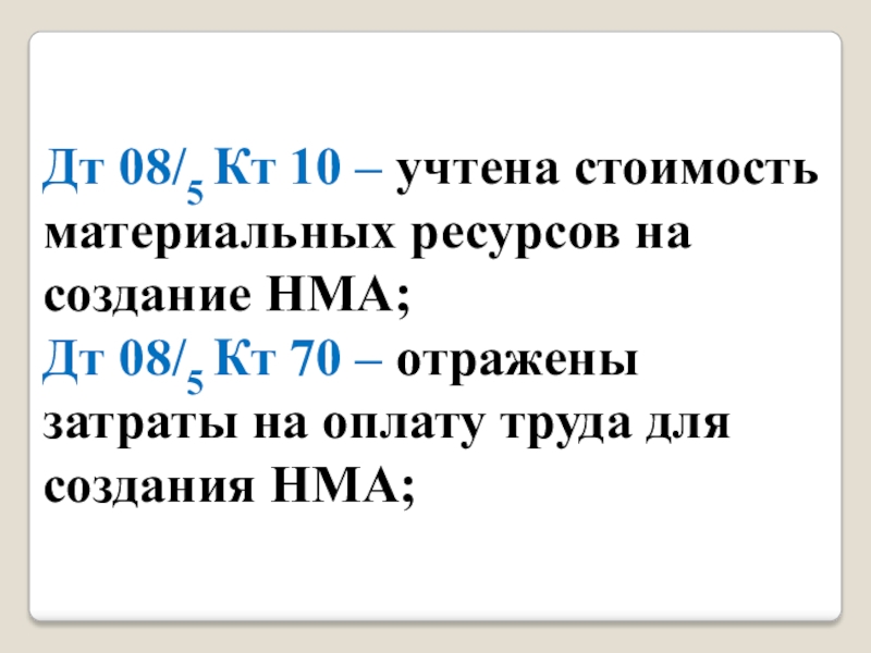 Слайд 32Дт 08/5 Кт 60,76 – отражена стоимость НМА или затраты по