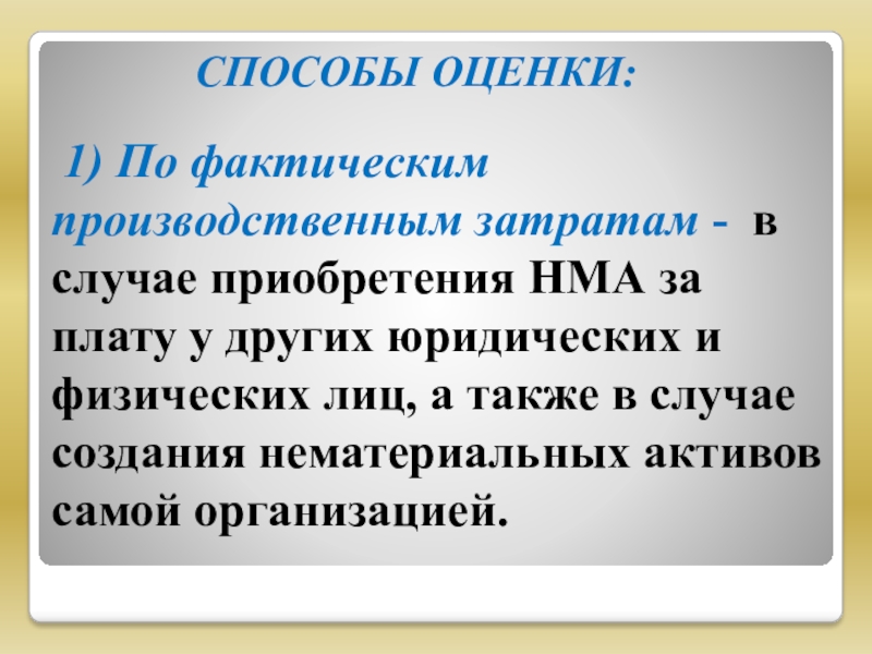 Слайд 23 1) По фактическим производственным затратам - в случае приобретения НМА